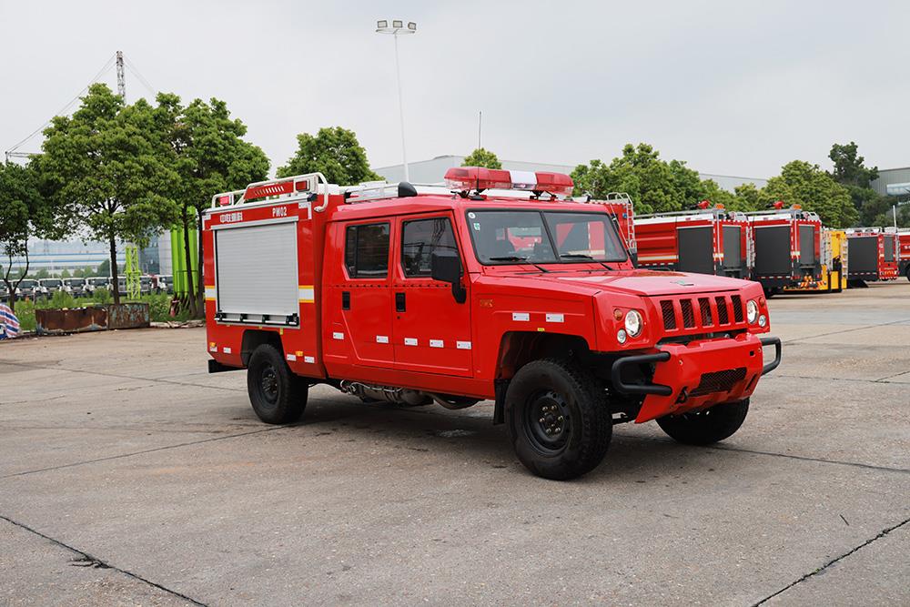 中联重科PW02A6“平战接合型”水雾消防车,在救援队伍行进时,起突前救援及通信作用,搭载高性能细水雾模块,实现前期火灾的扑救,实现打早打小;搭载车载电台与后方无线语音通信,对救援车队起到引导作用,还可搭载危险气体侦测设备,车载绞盘,倒伏式照明灯等器材设备,该消防车由北汽勇士(四驱)改制而成 天天影视,动力强劲,能适应泥泞,破损等复杂路况,适用于消防,公安,地震等应急救援场景, 。