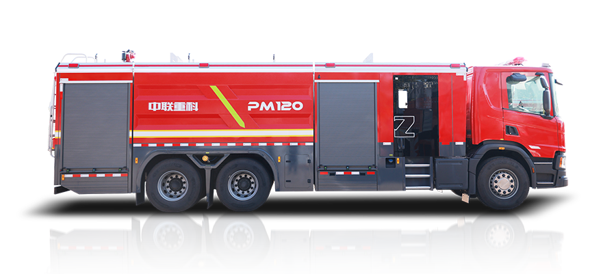 中联牌PM120型泡沫/水罐消防车,整车机动灵活,装备常规型B类泡沫系统,适合扑救工业与民用建筑A类火灾,亦可扑救石化,煤化,油库等B类火灾;全铝合金车身,自重轻,强度高,防腐蚀性能好,可随车携带多种抢险救援器材,是城市应急救援消防队与企业专职消防单位灭火救援的重要装备。